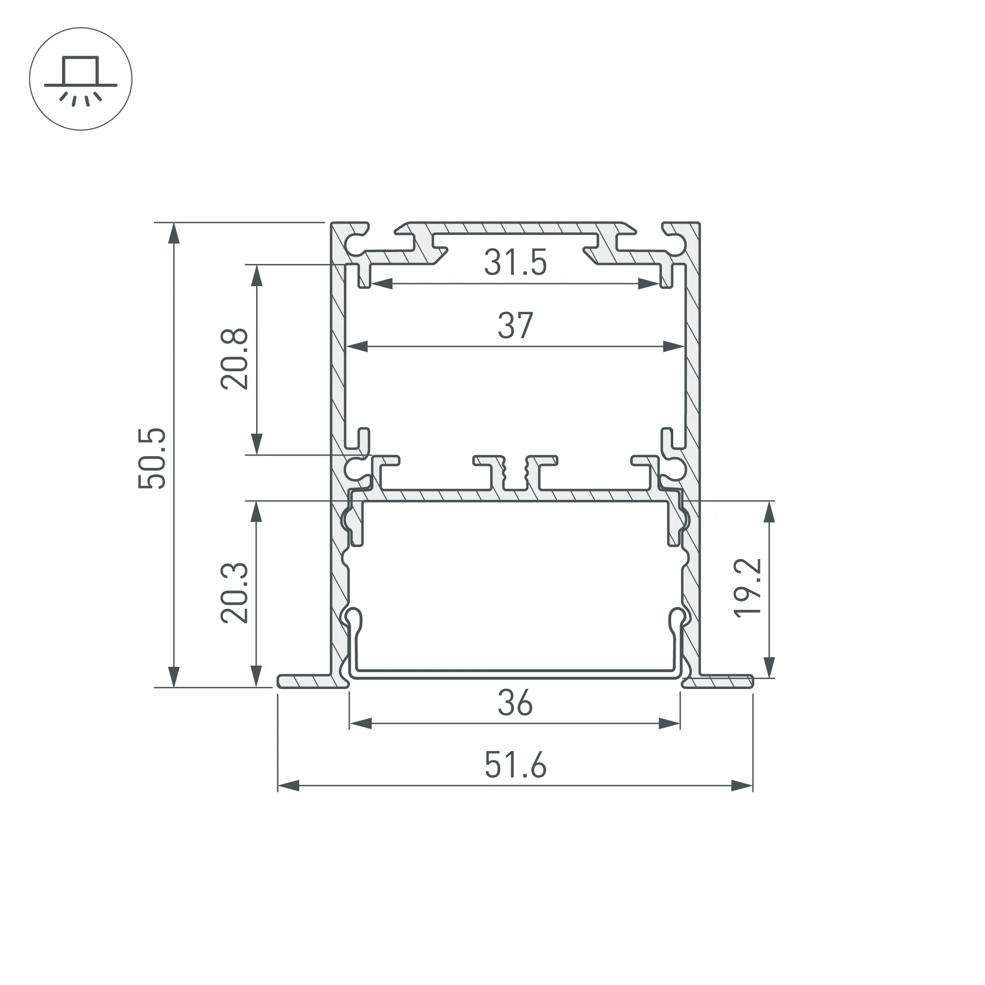 Встраиваемый алюминиевый анодированный профиль со съемной площадкой для светодиодной ленты в комплекте. Габаритные размеры (L×W×H): 2000x51,6x50,5 мм. Ширина площадки для ленты 33мм. Отсек для БП 31,5х20,8 мм. Возможность установки экрана на разных уровнях (три варианта). Экраны, заглушки и другие аксессуары приобретаются отдельно. Цена за 1 метр.