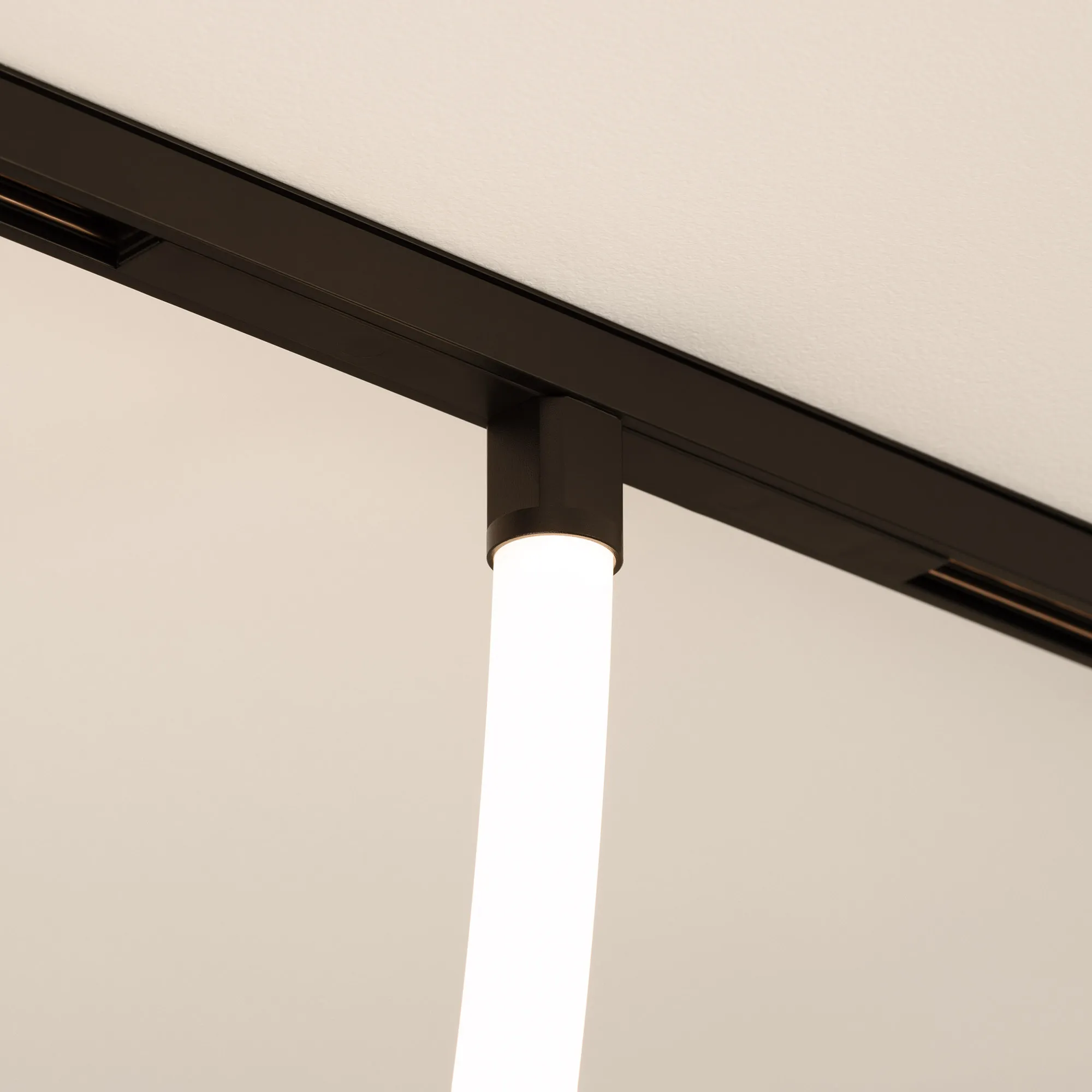 Светильник гибкий для магнитных треков серии ORIENT. Мощность 35 Вт, св. поток 2120 лм, 60 лм/Вт, теплый 3000 K, CRI>90, угол 360°, напряжение питания 48 В. Матовый белый фигурный корпус из силикона с черными креплениями. Размер: диаметр 25 мм, длина 2500 мм. Монтаж на магнитный трек ORIENT. Адаптеры в комплекте.