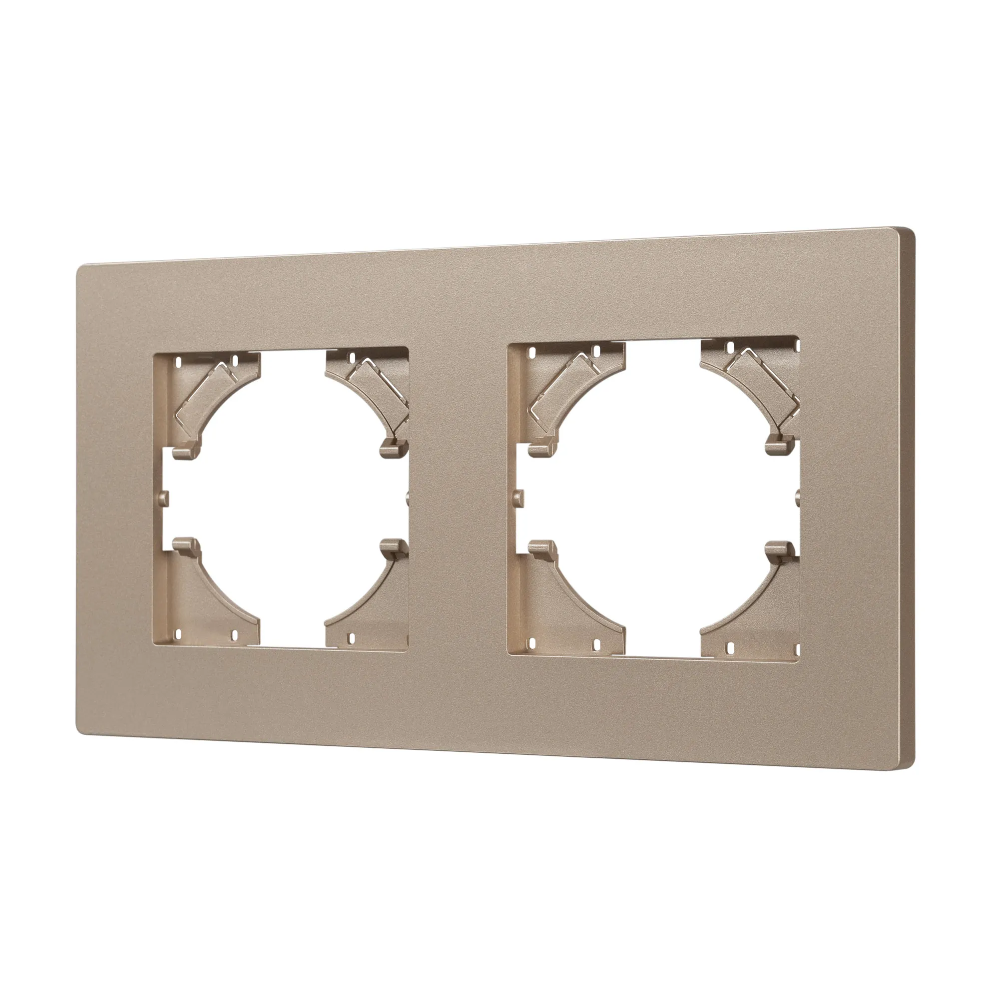 Рамка пластиковая на 2 поста, под встраиваемый механизм. Цвет - золотой. Уровень герметичности IP20. Ориентация монтажа - горизонтальная (основным ориентиром служат посадочные выступы для накладки механизма).